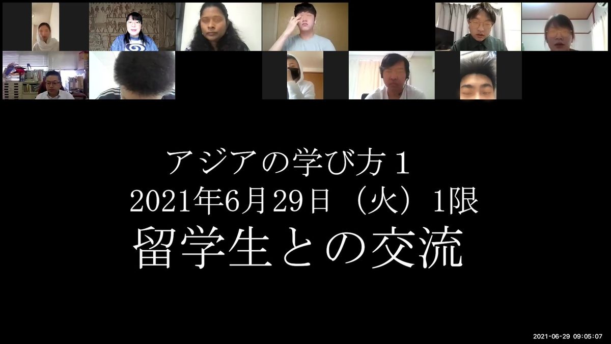 文化社会学部アジア学科では6月29日にオンラインで、1年次生を対象とした「留学生との交流会」を開催しました。本学ではアジアを中心に各国から多くの留学生を受け入れていることから、学生に各国の文化や生活について学ぶ機会を創出しようと、本学科の開講科目「アジアの学び方1」の一環で毎年交流会を実施しています。今回は新型コロナウイルス感染症拡大の影響によりWEBビデオ会議システム「Zoom」上で実施し、留学生15名を含む約75名の学生が参加しました。