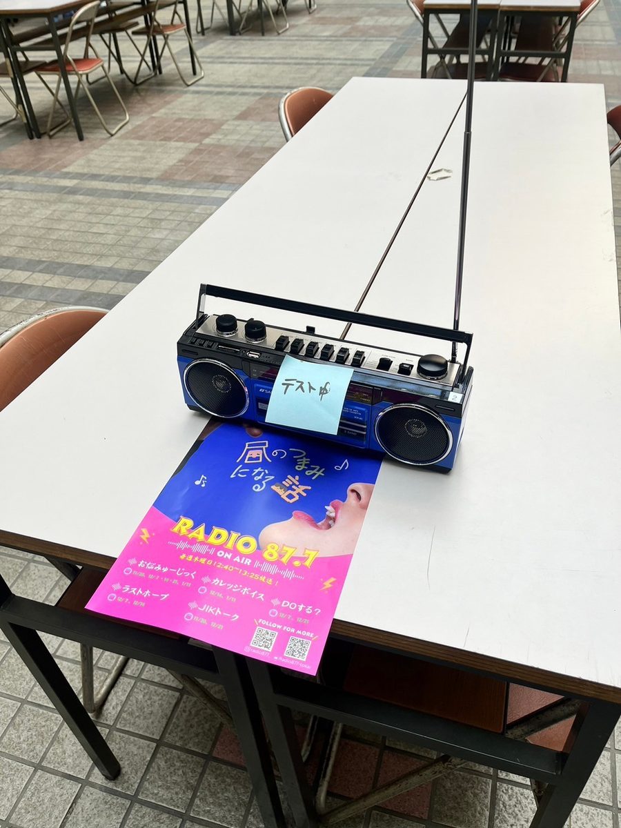 14号館の地下や3号館周辺に昭和レトロなラジカセも設置しますので、見つけた方は、昼食の隙間に、ぜひお耳をお貸しください!