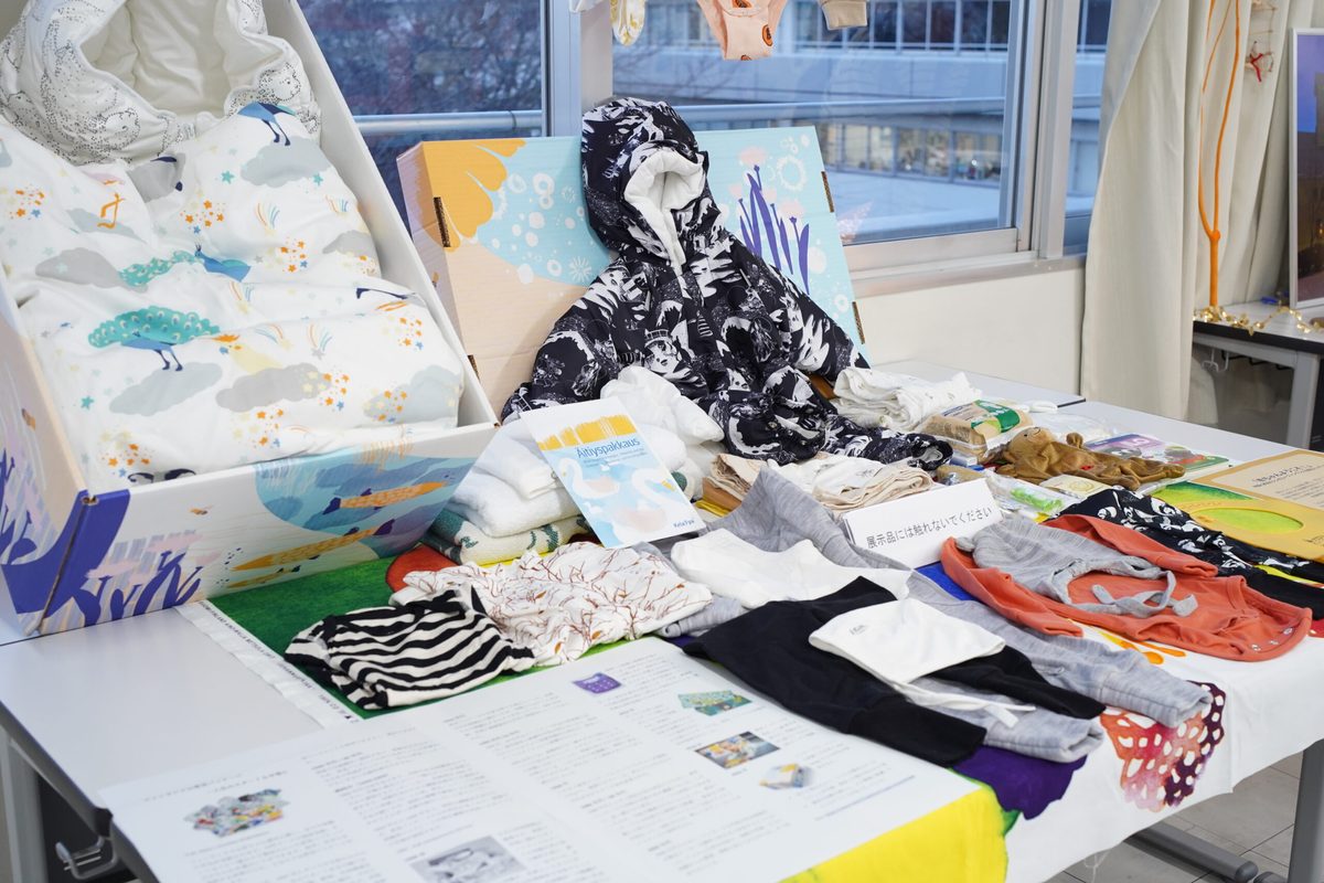 北欧各大使館からご提供頂いた資料をご覧頂けるコーナーでは、フィンランド大使館から同国政府が妊婦に配布している育児パッケージをお借りして展示。