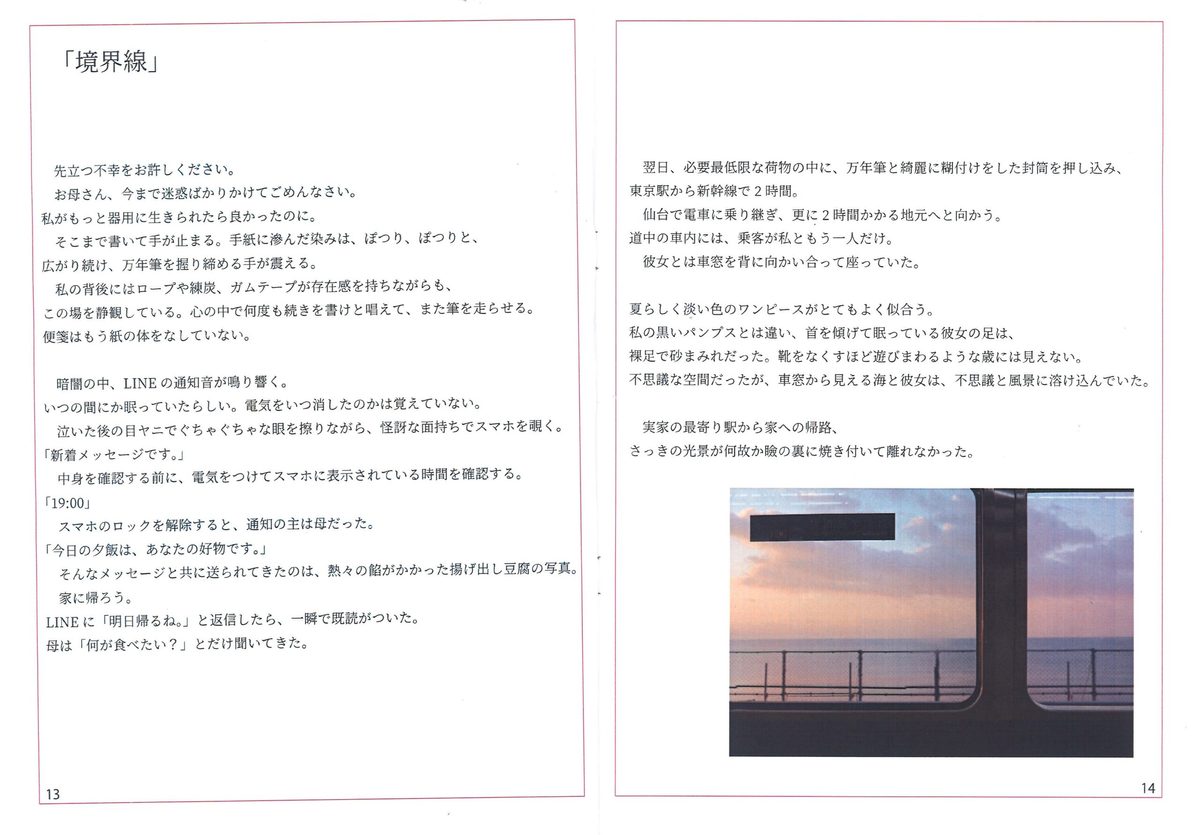 社会人2年目、多忙な日々ですが、仲間たちと「inside」という同人誌を立ち上げて、最新号では「境界線」という短編小説を載せています。