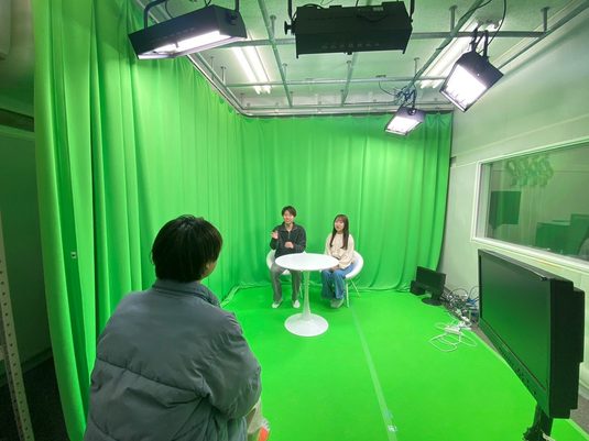A 2 .テレビ班はプロが使用している機材が多く揃っており、それこそグリーンバックも今やテレビ業界では当たり前になっています。また、レギュラー番組を持っており、それらを活かして実際に力を発揮できるところも少ないと思うので、貴重な経験を積めると思います。興味がある人はぜひ一緒に番組制作していけたらと思います!(山下さん)