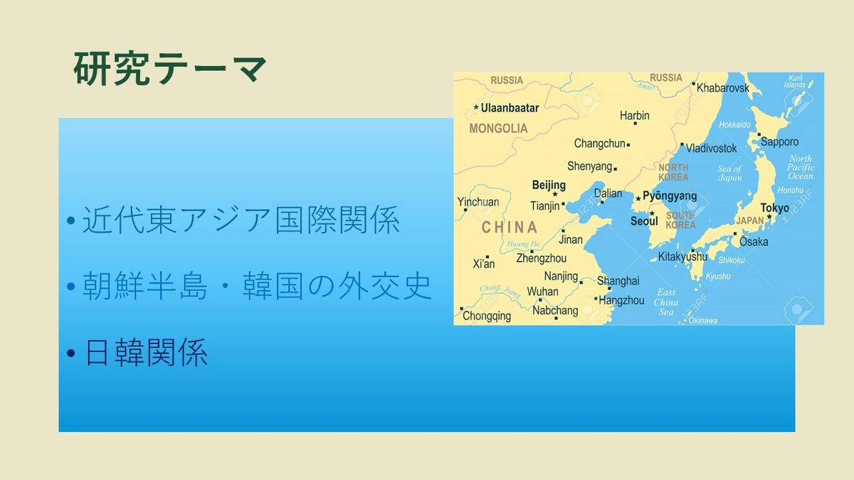 専門は朝鮮半島を中心とした近代東アジアの国際関係です。