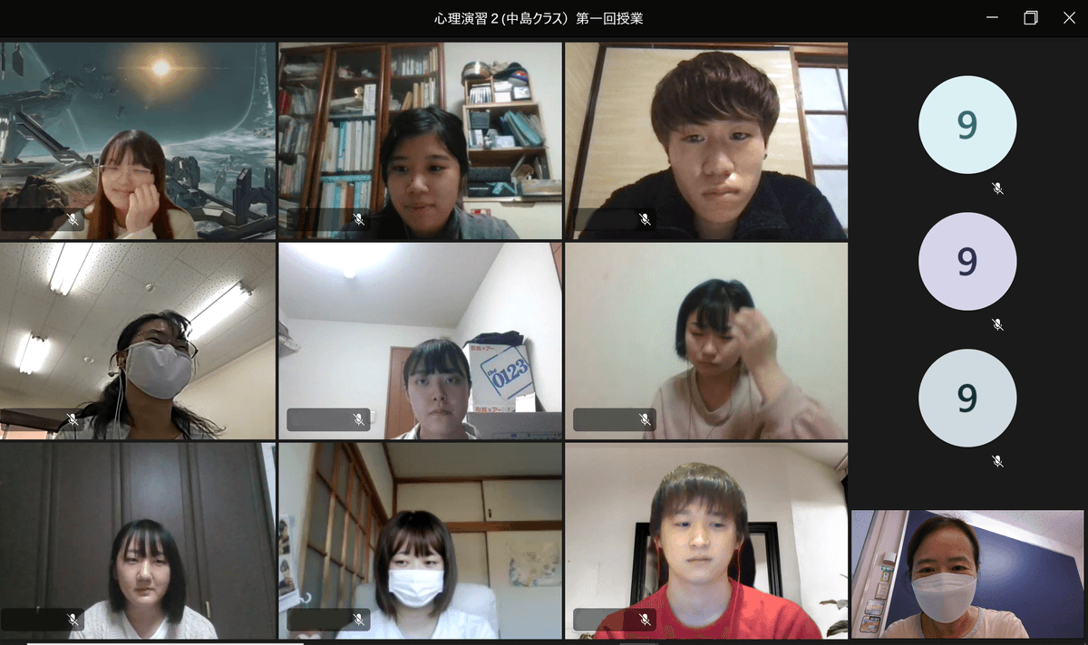 今年度は10名と12名の2クラスからなり、演習時にはさらに小グループに分かれるため、積極的に発言することが求められます。春学期当初はぎこちなさもありましたが、秋学期の初日にはリラックスした雰囲気で心理演習がスタートしました。
