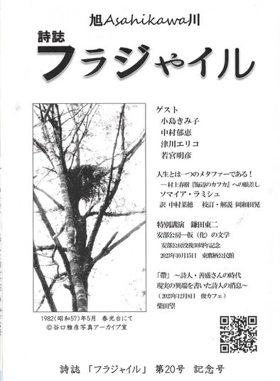 「フラジャイル」は2017年創刊の詩誌で、とても勢いがあり、同人たちもバラエティ豊かな作品を寄せているのが特徴です。また、毎号豪華なゲストや企画が目白押し。最新20号ではアフガニスタンの亡命詩人ソマイア・ラミシュさんによる詩「(銃弾が彼の心臓に狙いをつけたが)」「(詩を装填せよ、銃のように―)」(訳:木暮純訳、校訂:岡和田晃校訂)および評論「人生とは一つのメタファーである!ー村上春樹『海辺のカフカ』への眼差し」(訳:中村菜穂 、校訂・解説:岡和田晃)が、ひとつの目玉になっています。