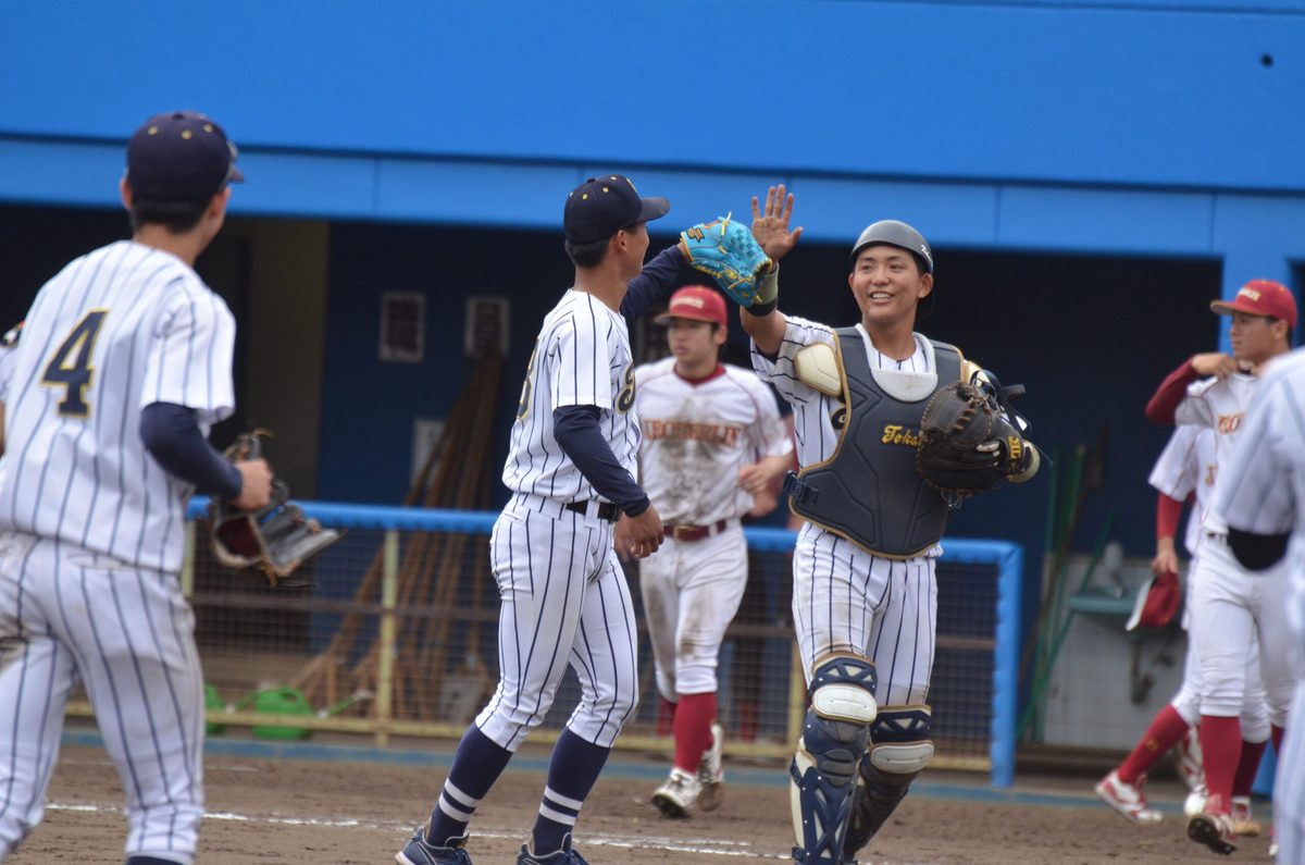 5月25日の桜美林大学戦では、米田投手の完封勝利をアシストしました。