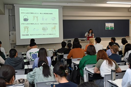 文化社会学部北欧学科では6月21日に湘南キャンパスで、知のコスモス「フィンランドのモダニズムから日本の『いま』を考える ―地域性、持続可能性、良い生活―」を開催しました。栃木県・宇都宮美術館の学芸員の経験を持ち、現在は文星芸術大学で非常勤講師をしながら、宇都宮大学の大学院生として大谷石を研究している近代建築・デザイン史家の橋本優子氏が講師を務めました。