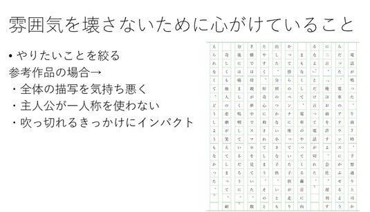当日僕たちは、「私はこんなふうに創作してきた」というテーマで授業を行いました。これは皆にとっての正解ではなく、書くという形のない巨大なものに僕たちはどう向き合っているのか、その荒波の中でどのようにもがいているのか、ということを伝えることにしたのです。