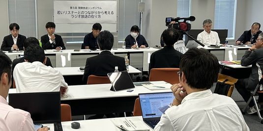 シンポジウムでは他にも、TOKYO FM「SCHOOL OF LOCK!」、TBSラジオ「TALK ABOUT」の各番組制作担当者が、特にラジオ離れが進む若い世代への対応について紹介したほか、慶應義塾大学総合政策学部ラジオプロジェクトのリーダーが「FMしながわ」でのラジオ番組制作について講演しました。最後にはパネリスト5人らで「今、若いリスナーへラジオを通じて届けたいこと、ラジオを聴き続けてくれるために必要なことは」をテーマにディスカッションを行い、約2時間半にわたるシンポジウムが幕を閉じました。
