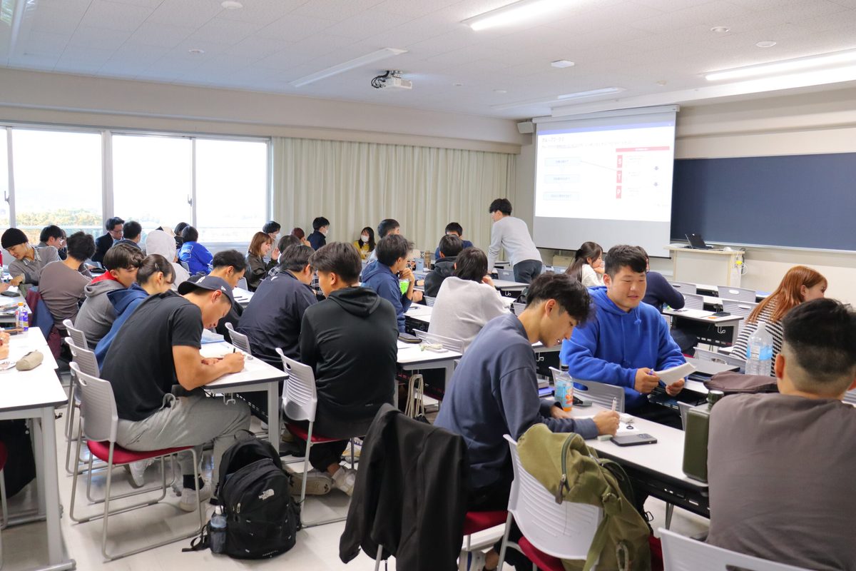 株式会社本田技術研究所でAIを搭載したモビリティの技術実証実験や、それに伴う地域活性化プロジェクトに携わっている玉置一真さんが、11月8日、アジア学科 開講科目「現代アジアの課題A」で実践的なワークを交えた授業を行いました。