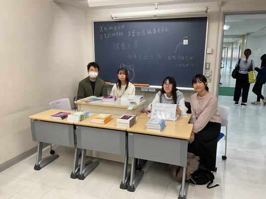今回の建学祭では「文藝工房28年を巡る」と題して、第1号から最新号である第28号までを編集委員が製作したポップと共に展示し『文藝工房』の歴史を振り返りました。
