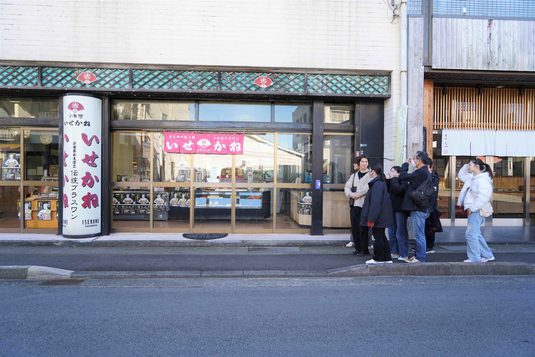 小田原駅南口にある二宮尊徳像の前に集合し、まずはかまぼこ工場のある「いせかね(伊勢兼)」さんまで歩きました。