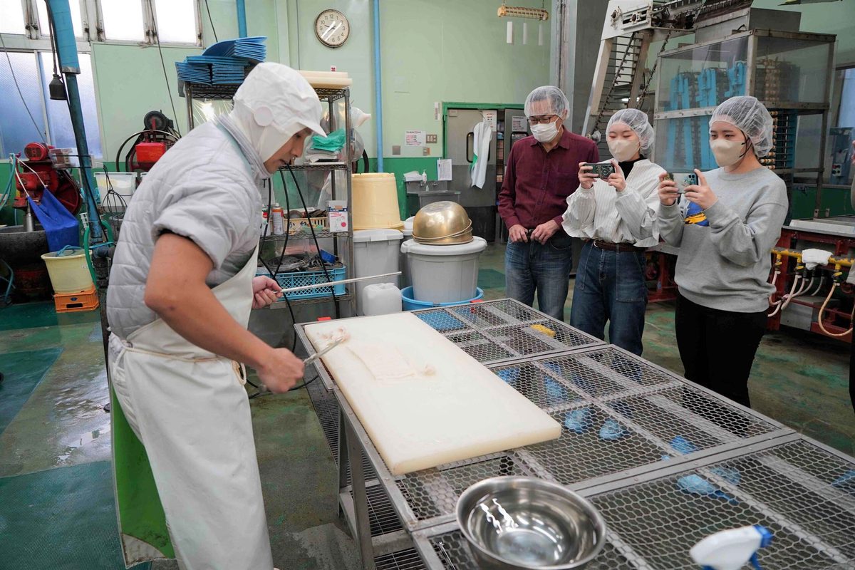 3名の留学生(内1名は工学部)と学部生2名、大学院生1名で、小田原のかまぼこ工場の見学に出かけました。