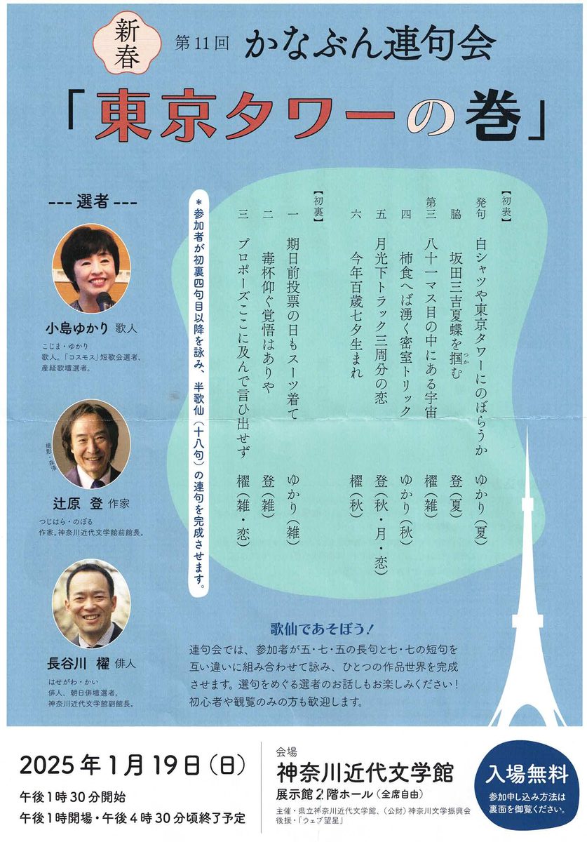 ※連句会で入選した句は、神奈川近代文学館の機関紙とホームページ、および「ウェブ望星」に掲載される予定です。