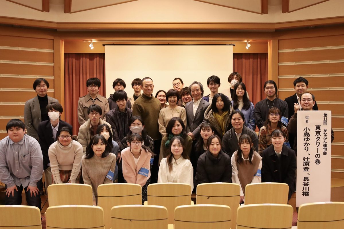 「かなぶん連句会」は文芸創作学科創設にかかわった辻原登先生(作家・前神奈川近代文学館長)と長谷川櫂先生(俳人・朝日俳壇選者・神奈川近代文学館副館長)が、小島ゆかり先生(歌人・産経歌壇選者)とともに東海大学ではじめた「東海大学湘南連句」が前身で、種々の事情により主催が神奈川近代文学館に変わり、今に至ります。