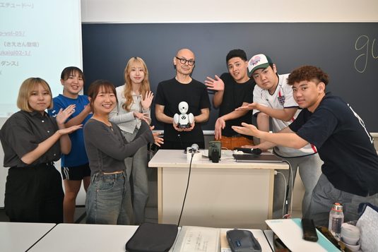 講演後の質疑応答では、「OriHimeはどのように操作するのですか?」「コミュニケーションで大切にしていることは?」といった質問に、さえさんが丁寧に答えました。授業を担当する片山淳教授は、「顔が見えなくても、さえさんのほがらかな声や明るい笑い声から人柄が伝わってきました。テクノロジーが進化しても“心のつながり”の大切さは変わりません」と講評しました。学生からは「最初はOriHimeを“ロボット”として見ていましたが、後半には“さえさん”として話を聞いている自分に気づきました」「多様なコミュニケーション手段が生まれることで、誰もが働きやすく、暮らしやすい社会が実現するのは素晴らしいと思います」といった感想が聞かれました。