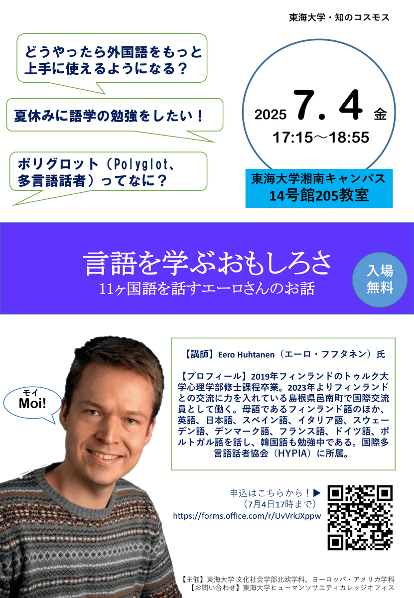 【主催】東海大学 文化社会学部北欧学科、ヨーロッパ・アメリカ学科
