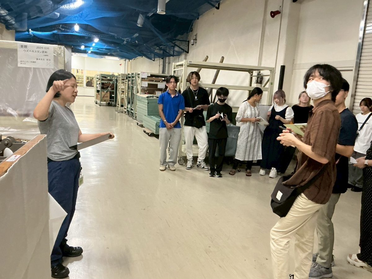 2025年9月1日から3日までの3日間、大阪万博記念公園内にある国立民族学博物館でアジア学科のプロジェクト授業「アジア研究プロジェクトA」を実施しました。学生は3つのグループ(中央アジア、西アジア、韓国)に分かれ、国立民族学博物館に展示されているアジア資料の熟覧および資料スケッチを行いました。