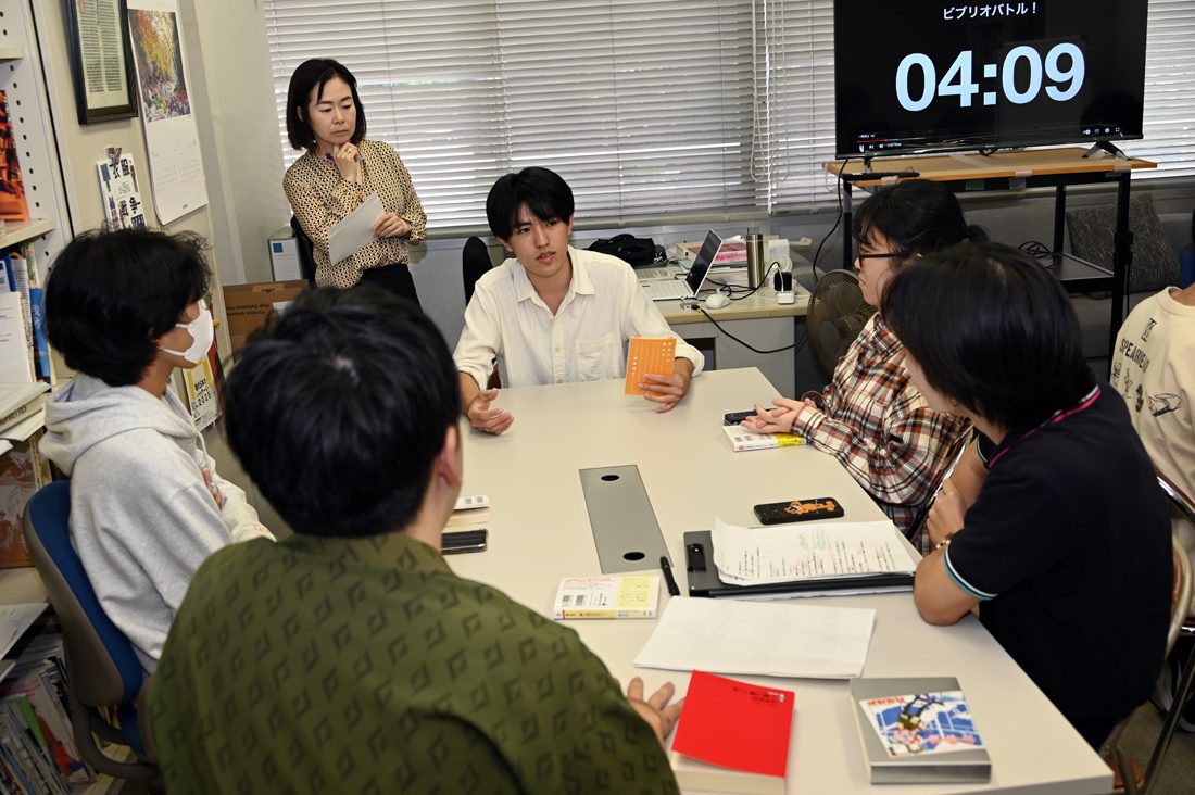 文化社会学部広報メディア学科の増田芽衣教授のゼミナールでは、10月13日に湘南キャンパスで「全国大学ビブリオバトル2025」に向けた予選会を開催しました。ビブリオバトルは、バトラーと呼ばれる参加者がおすすめの本をアピールし合い、発表を聞いた参加者が最も興味を持った本に投票。最多票を集めた本が「チャンプ本」となる知的書評合戦です。「全国大学ビブリオバトル」は活字文化推進会議等が主催し、全国各地の大学などさまざまな団体が開くブロック予選を勝ち抜いた大学生・大学院生が出場します。