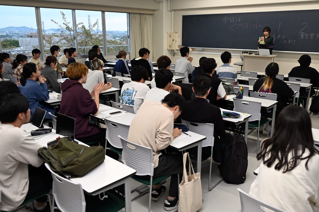文化社会学部広報メディア学科の増田芽衣教授のゼミナールでは、10月13日に湘南キャンパスで「全国大学ビブリオバトル2025」に向けた予選会を開催しました。ビブリオバトルは、バトラーと呼ばれる参加者がおすすめの本をアピールし合い、発表を聞いた参加者が最も興味を持った本に投票。最多票を集めた本が「チャンプ本」となる知的書評合戦です。「全国大学ビブリオバトル」は活字文化推進会議等が主催し、全国各地の大学などさまざまな団体が開くブロック予選を勝ち抜いた大学生・大学院生が出場します。