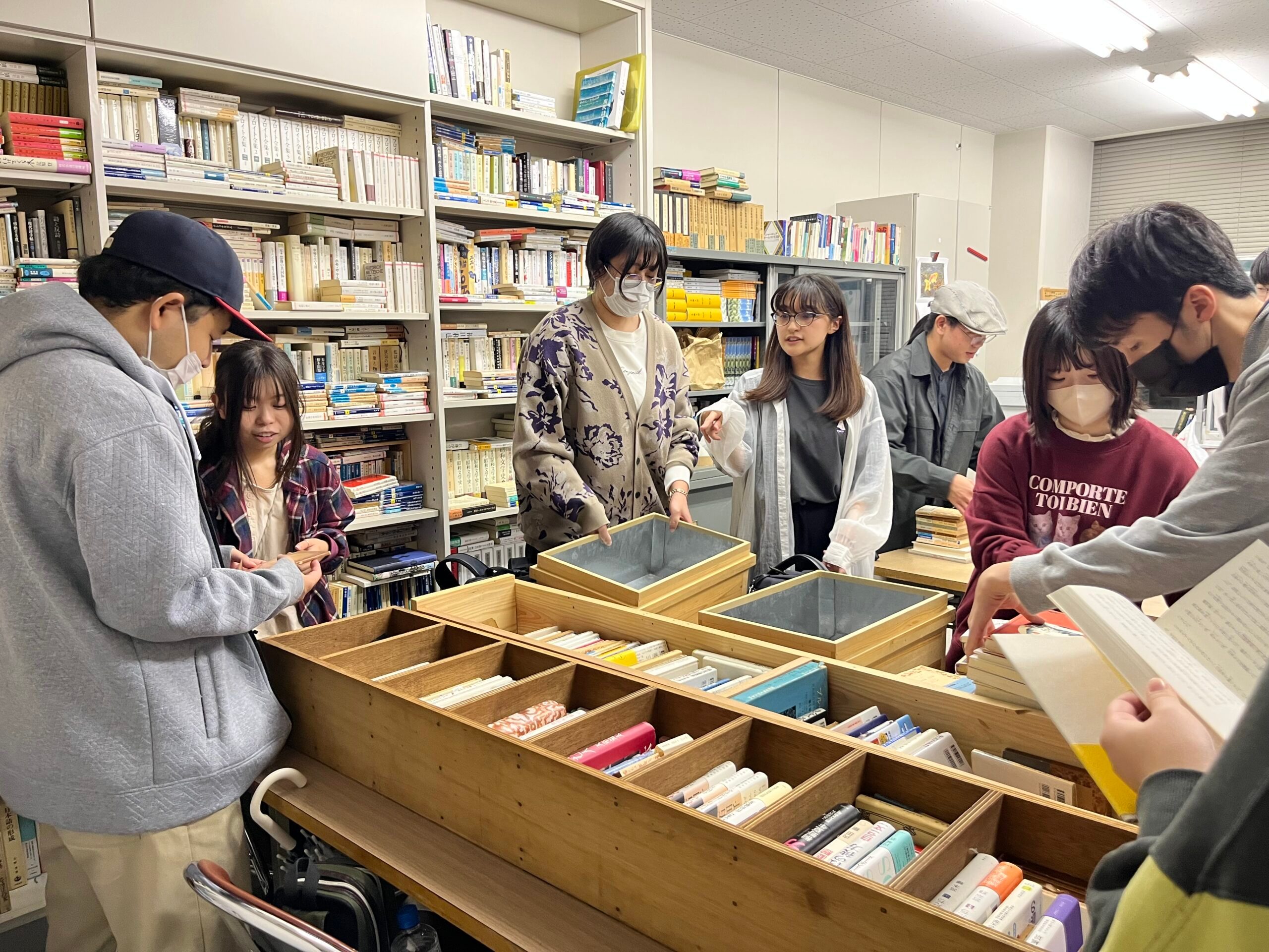 当日に向け、編集委員一同、集まった寄贈本の仕分けをするなどして着々と準備を進めています。来場者の方が気になった本をゆっくり手に取れる読書スペースの設営も検討中とのこと。