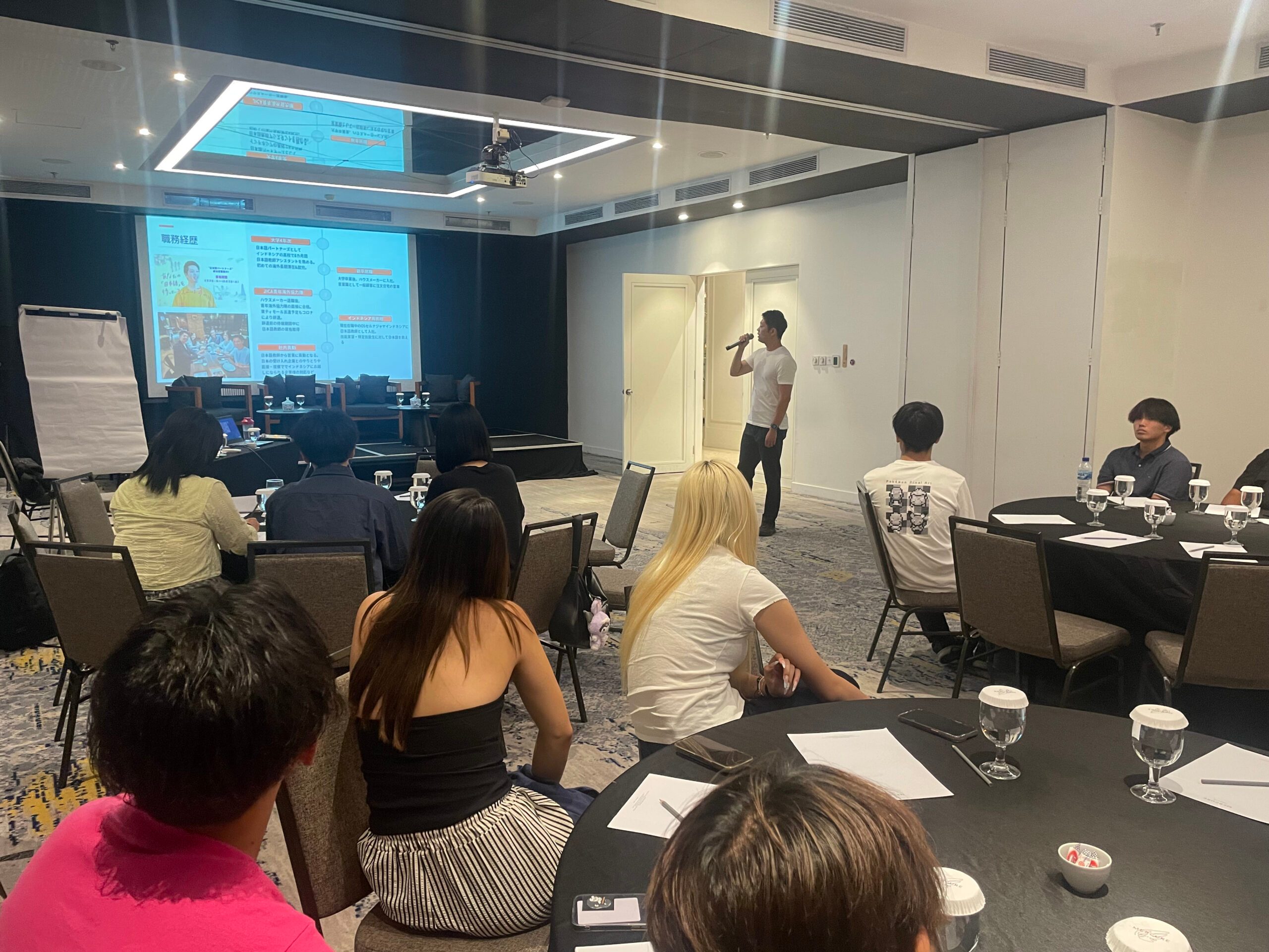 アジア学科の「アジア海外研修」(科目名:アジア研究セミナー1)でジャカルタを訪れた学生たちを前に、海外で働くことの魅力を語ってくれました。