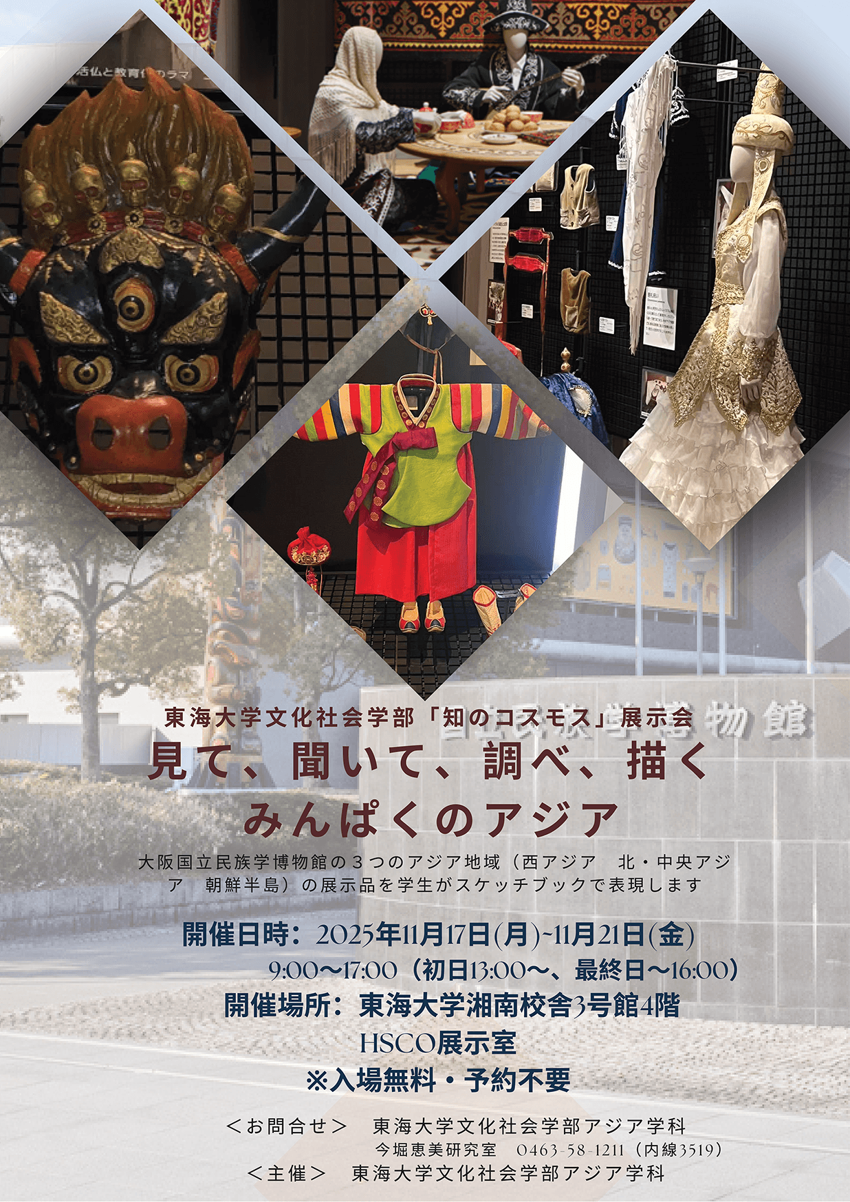 文化社会学部「知のコスモス」展示会『見て、聞いて、調べ、描く みんぱくのアジア』