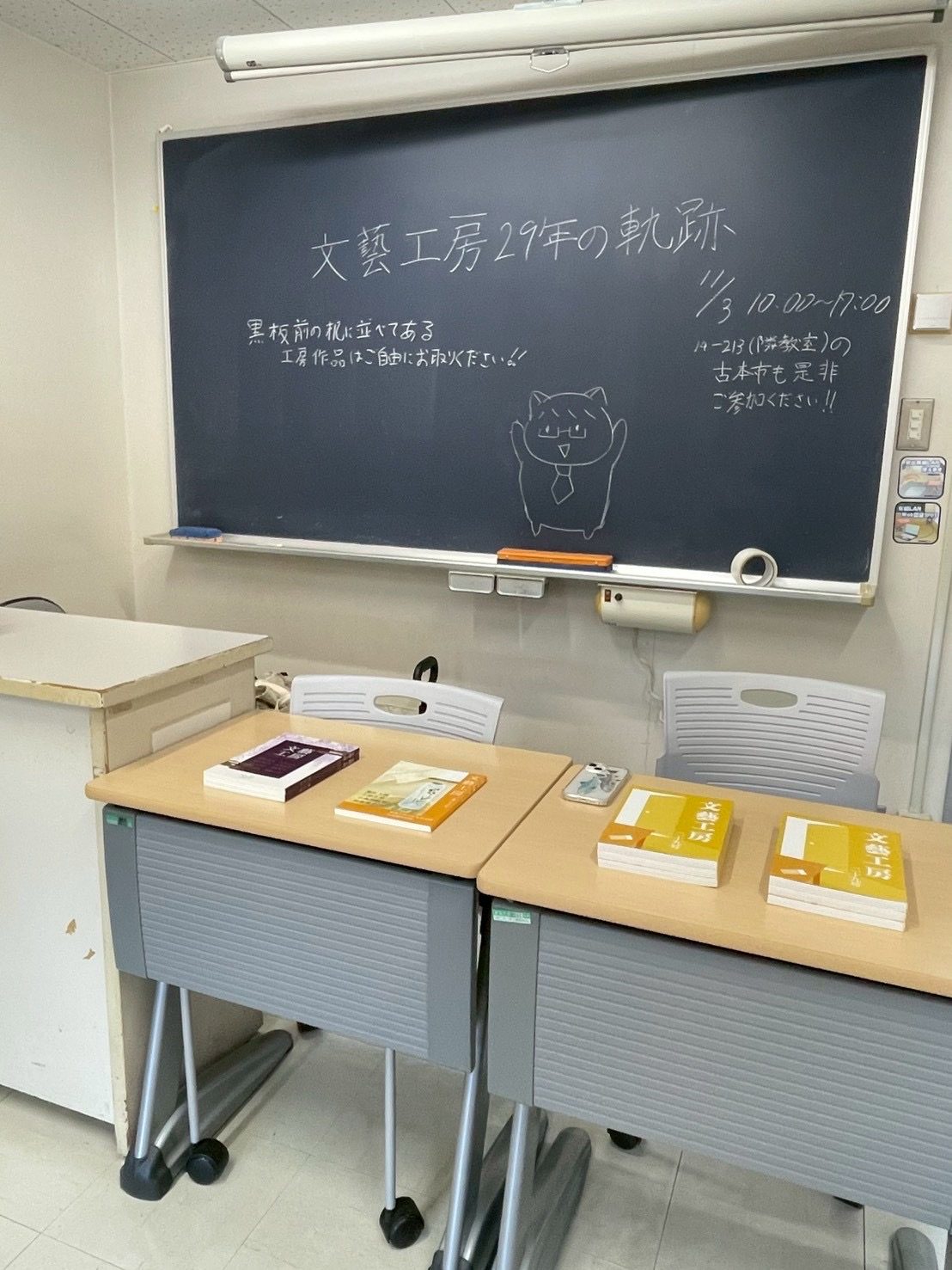 11月1日から3日まで行われた建学祭にて、『文藝工房』編集委員会がバックナンバーの展示「文藝工房29年の軌跡」と古本市を行いました。