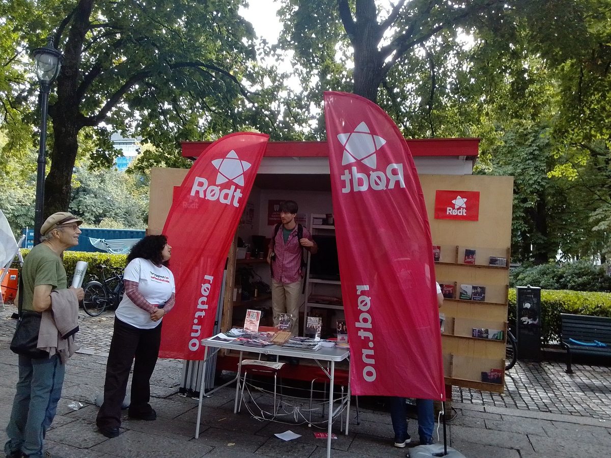 国政選挙が迫っていた時期だったので、各政党の選挙小屋が首都オスロのカール・ヨハン通りに立ち、オスロで活躍するジャーナリストの鐙麻樹さんの解説で選挙小屋を回ることもできました。