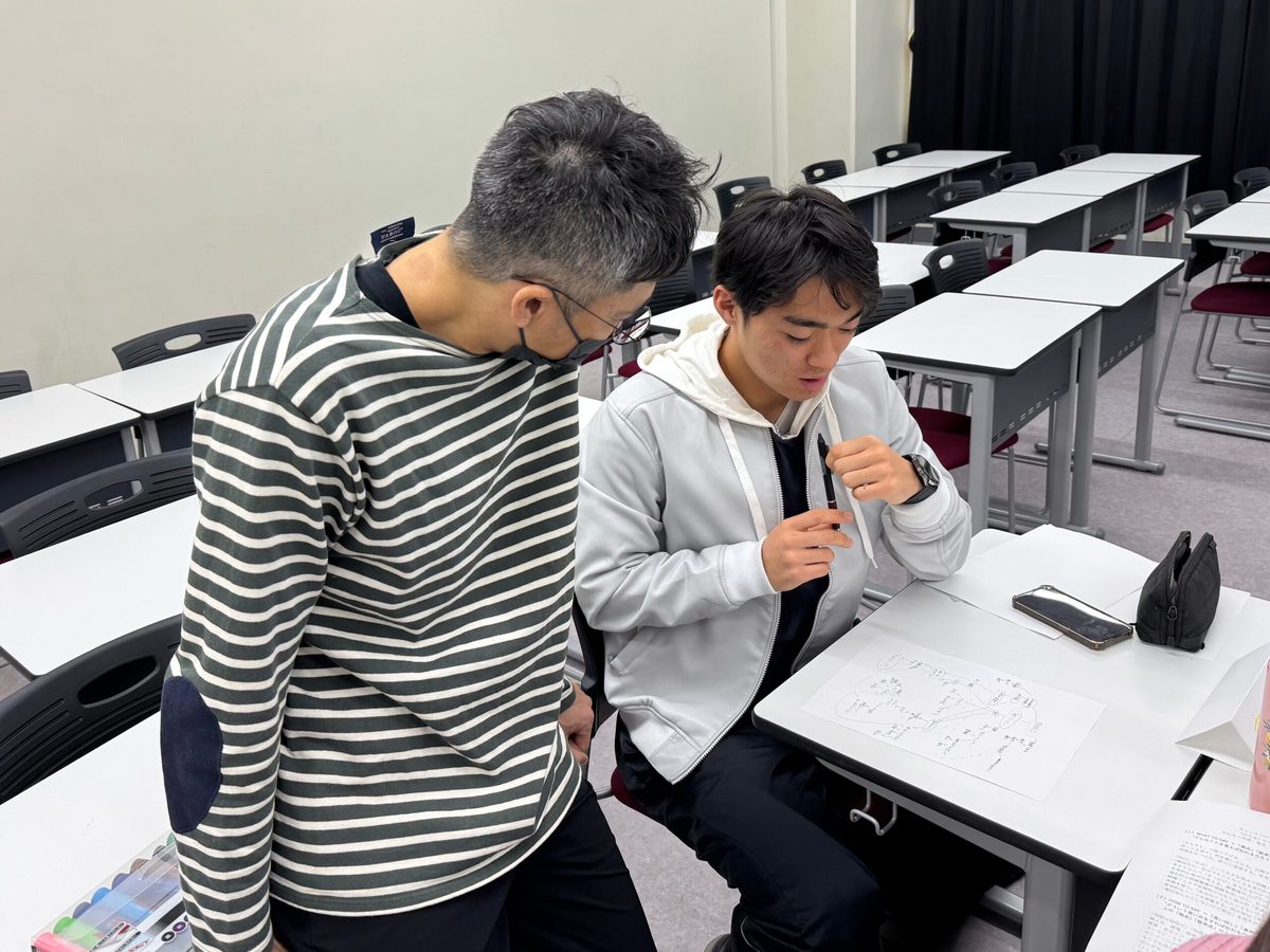 ワークショップ当日は、池端氏の講義で学んだことをもとに、学生が複数のキャッチコピーを考案し、株式会社竹尾様の担当者からも講評をいただきました。学生たちは、紙を「単なる材料」ではなく、“情報や想いを伝えるメディア”として捉える視点を学びました。