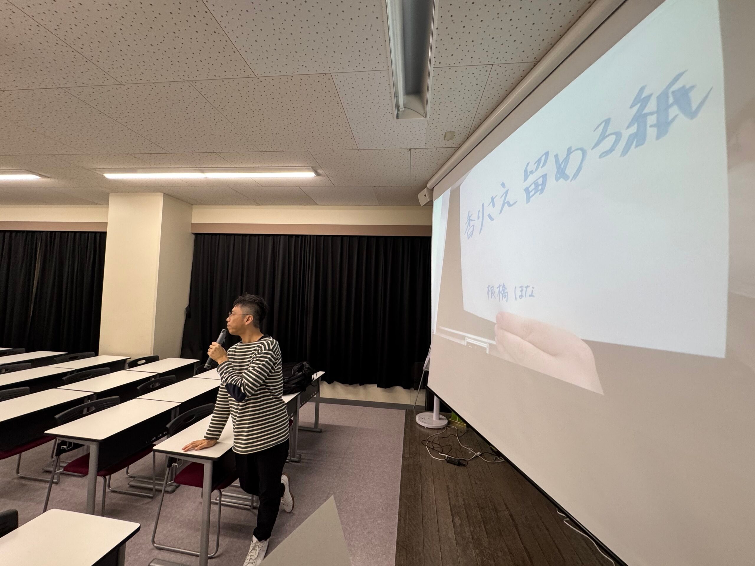 この取り組みは、紙の本質的な価値を掘り下げ、株式会社竹尾様のファインペーパーが持つ「手ざわり」「質感」「印象」といった魅力を言葉で表現することを目的に実施されました。単なる素材としての紙ではなく、情報を伝えるメディアとしての紙の価値を見つめ直すことで、学生たちは「物事の本質を言語化する力」を養うことを目指しました。