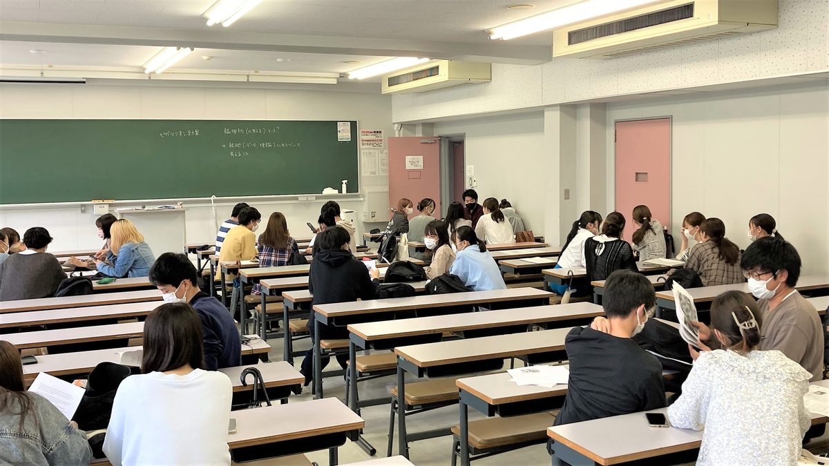 「英語で学ぶ心理学・社会学」は2022年度から開講された心理・社会学科の科目で、今学期は1年生が履修しています。