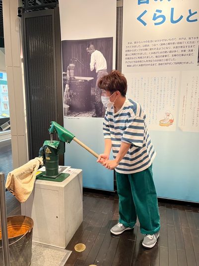 今村: 一番印象に残っていることは、「水汲み体験」です。文章でしか読んだことがないような戦時中の経験を、実際に体験できて面白かったです。黒塗りされたはがきも印象に残っています。兵士から家族に、「支援物資を送ってほしい」というはがきを送っていた記録が展示されていましたが、その内容が黒塗りされていました。当時の言論統制や校閲の厳しさが窺えました。当時の新聞記事の展示もありました。戦況を事細かに知ることのできる少ない手段の一つが新聞だったため、今の新聞よりも文字の間隔が狭く、所狭しに文字が並んでいたのが印象的でした。