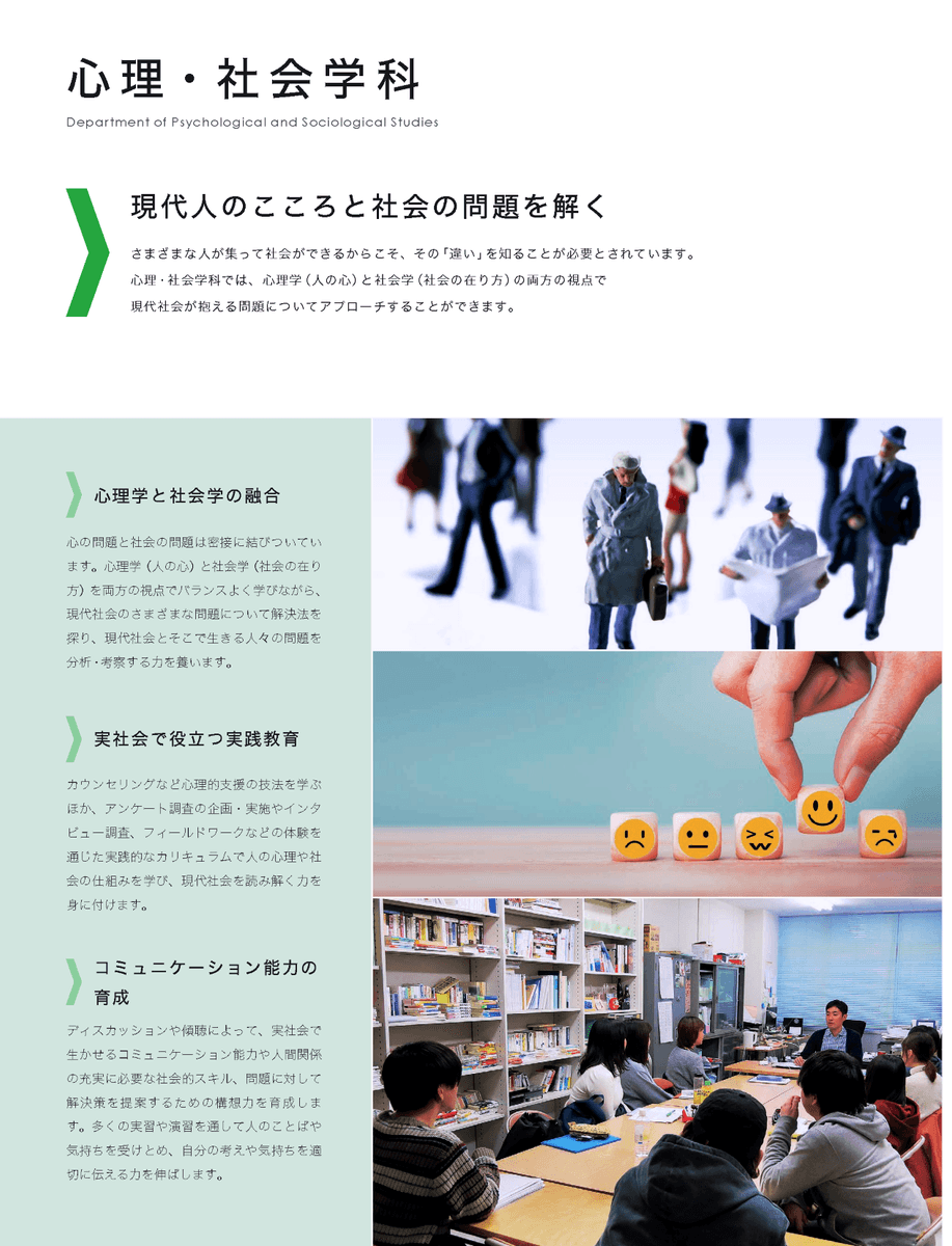 心理・社会学科の学科相談ブースには、35組(計64名)の方々にお越しいただきました。ありがとうございました。個別相談では、入学後のカリキュラム、取得可能な資格、卒業後の進路(主な就職先)、学生生活全般のことなど多くの質問が寄せられました。多くの方々が心理・社会学科に関心を持って頂いていることを実感しました。