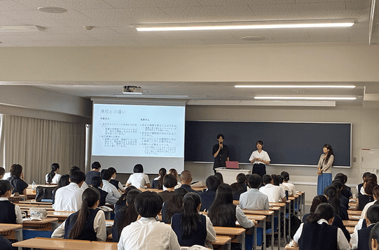 付属大阪仰星高等学校中等部で「楽しく学校生活を送るために~仲間と絆をつくろう~」をテーマに講話を行いました(活動報告:有沢孝治)