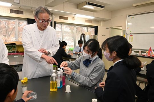 応用化学科の秋山教授が付属相模高校中等部で実験教室を開催しました