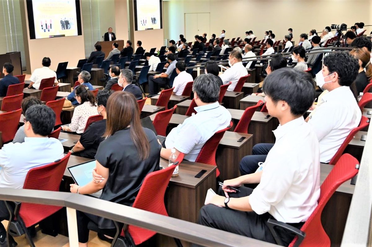 東海大学では9月13日に、株式会社島津製作所東京イノベーションプラザメインホール(川崎市)で「次世代研究創成拠点シンポジウム2023」を開催しました。次世代研究創成拠点は、特色ある研究を推進する学内の3つの研究所「マイクロ・ナノ研究開発センター(MNTC)」「総合医学研究所」「先進生命科学研究所」の合同拠点として今年1月に設置しました。医学、理学、工学、AI、情報学、経済学など多様な分野を横断する学際的・独創的な学術的価値の高い研究を推進。その成果を実用化につなげるとともに、社会と学術界の連携による好循環を構築し、若手研究者や研究支援人材の育成を目指します。シンポジウムはオンラインでも配信し、本学の教職員をはじめ、大学や企業の研究者、文部科学省や自治体の職員ら224名が参加しました。