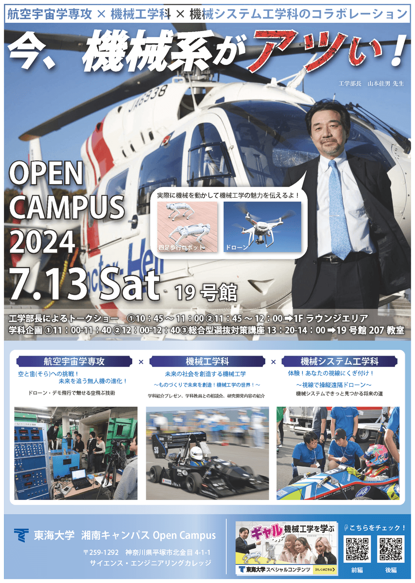 2024年7月13日(土)に湘南キャンパスで、『今、機械系がアツい!』イベントを開催します。