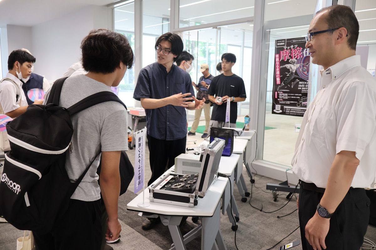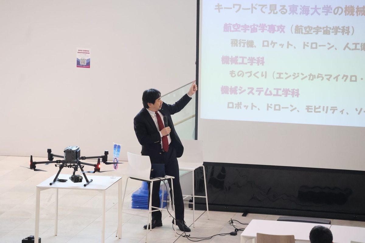 2024年7月13日(土)に湘南キャンパスで、航空宇宙学科航空宇宙学専攻×機械工学科×機械システム工学科のコラボレーション企画『今、機械系がアツい!』イベントを開催しました。工学部長によるトークショー(学部説明)後、学科企画へご参加いただきました。