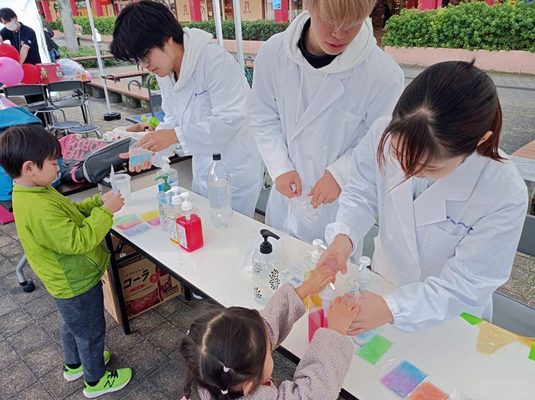 来場した子どもは、「色の違うスライムを混ぜたら何色になるんだろうか?と想像しながら体験できて楽しかった」と話し、保護者からは、「学生の皆さんが実験の手順だけでなく、実験結果の理由なども分かりやすく説明してくれて勉強にもなった。また、次の機会にもぜひ参加したい」などの感想が聞かれました。