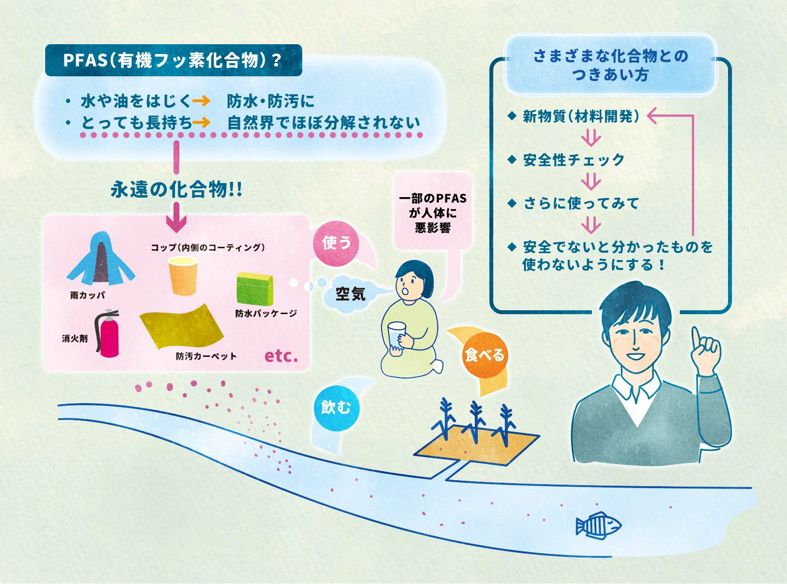 プラスチックもアスベストもPFASもすべて人が作り出した化合物です。そうした視点で見ると、「人工的な化合物はすべて危ない」と感じてしまう人もいるかもしれません。しかし化合物は人々の生活を豊かで便利にしてくれるものでもあります。安全がある一定以上認められたものは使い、問題があった場合はすぐに取りやめて、何がいけないのか調べる。そしてより安全で便利な化合物や使い方を考えていく。そんな姿勢が大切ではないでしょうか。