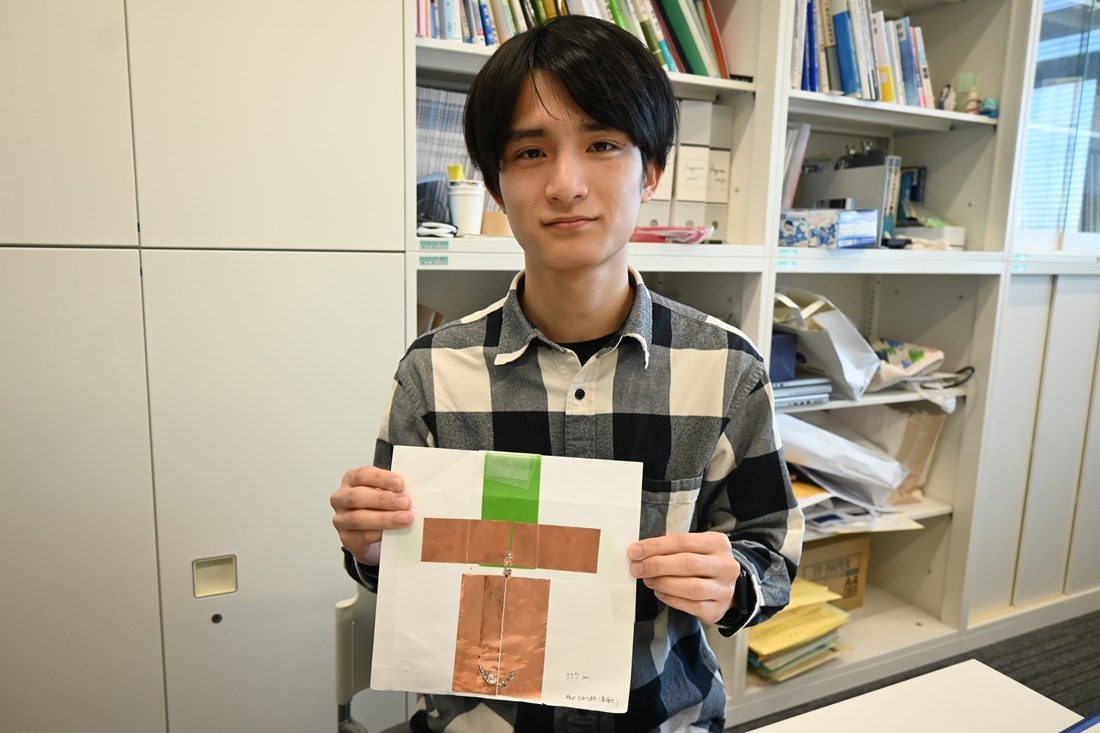 大学院工学研究科電気電子工学専攻1年次生の渡邉雄太朗さん(指導教員=工学部電気電子工学科・稲森真美子准教授)が、昨年12月12日に北海道大学で開催された「手ぶら参加歓迎!~身近な材料で作るWPTレクテナチャレンジ~」(主催・運営=電子情報通信学会通信ソサイエティ無線電力伝送研究専門委員会)に参加し、最優秀賞(第1位)を受賞しました。レクテナ(rectenna)は、交流を直流に変換する整流器(rectifier)とアンテナ(antenna)を組み合わせたデバイスで、無線電力伝送の有用な技術としてIoTや宇宙太陽光発電などへの応用が期待されています。