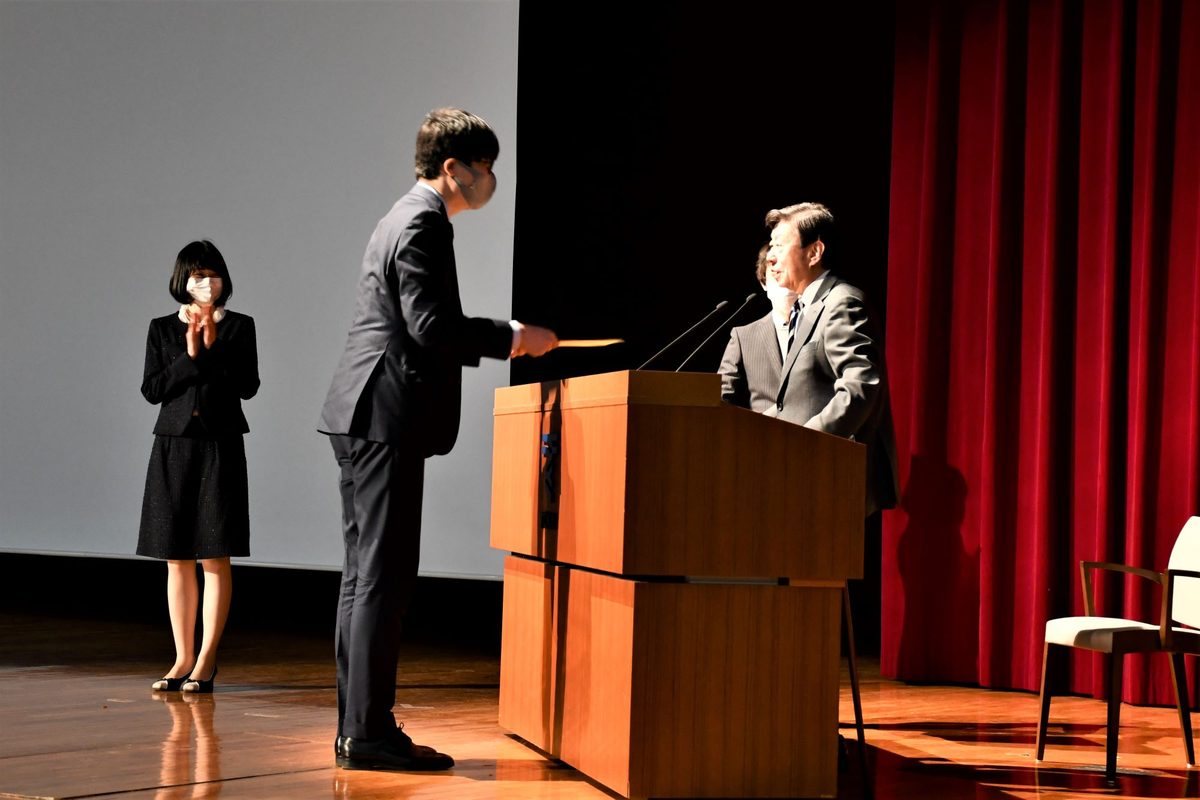 工学部動力機械工学科の加藤英晃講師が「2020年度ティーチング・アワード」の優秀賞に選ばれ、4月1日に湘南キャンパスで行われた授賞式で山田清志学長から賞状と目録が授与されました。本学では教育の質向上を目指し、2002年度から優れた授業を行う教員らを「ティーチング・アワード」として顕彰しています。1年間の講義科目の授業を対象に行った学生による授業についてのアンケートなどの結果に基づき、大学運営本部を中心とした厳正な審査を経て学長により決定されるもので、2020年度は3名に優秀賞を授与しました。