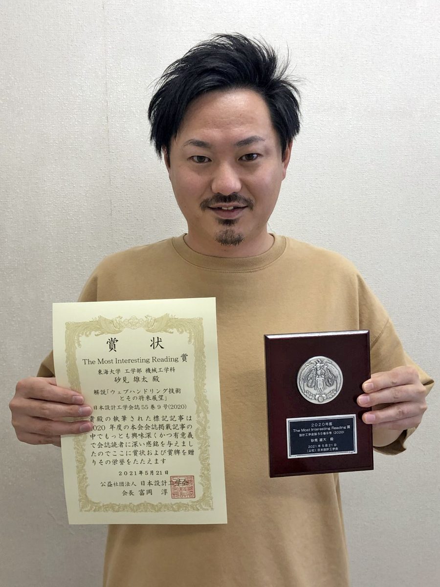工学部機械工学科の砂見雄太准教授が執筆した記事「ウェブハンドリング技術とその将来展望」が、5月21日にオンラインで開催された「2021年度日本設計工学会通常総会」で20年度「The Most Interesting Reading賞」に選ばれました。同賞は設計工学の分野における研究や教育ならびに設計開発の成果をわかりやすく伝えることなどを目的に1996年度に制定され、前年1月から12月末までに同学会誌『設計工学』に掲載された論文以外の記事のうち、読者である一般会員の投票結果をもとに内容が最も興味深いと認められる著者に贈られています。