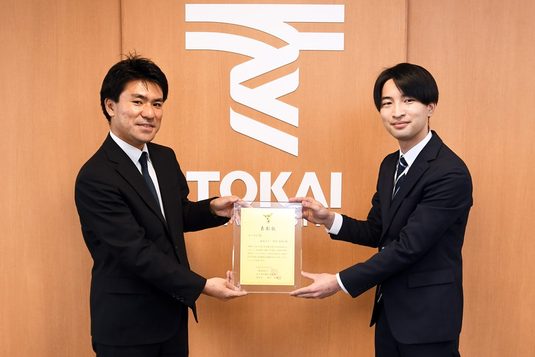 工学部機械工学科の窪田紘明講師が、3月31日に発表された田中貴金属記念財団「貴金属に関わる研究助成金」のゴールド賞を受賞しました。同助成金制度は1999年度から毎年実施されており、23回目となる今回は「貴金属が貢献できる新しい技術や研究・開発」が募集され、137件の応募の中から23件の研究に対し総額1660万円の助成金が贈られています。4月19日には田中貴金属グループ田中貴金属工業株式会社の担当者が湘南校舎を訪れ、窪田講師に金箔が施された盾が贈られたほか、窪田講師と熊本春輝さん(大学院工学研究科機械工学専攻2年次生)が研究概要を説明しました。