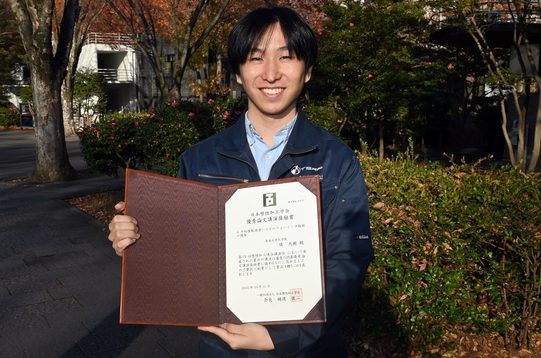 工学部では7月7日に湘南校舎で、学生自身が設定した自由な課題に挑む「学生自主研究奨励」の表彰式を行いました。大学の授業や身の回りの出来事の中で感じる疑問や関心から研究の種を膨らませ、芽吹かせていく学生を応援しようと2018年からスタートした取り組みです。学生たちは毎年9月にエントリーし、12月末に報告書を提出。今回は下野慎平さん(工学部3年次生)、小池鷹生さん(同4年次生)、荒井杏真さん(大学院工学研究科1年次生)が応募し、山本佳男学部長から表彰状と記念品が手渡されました。