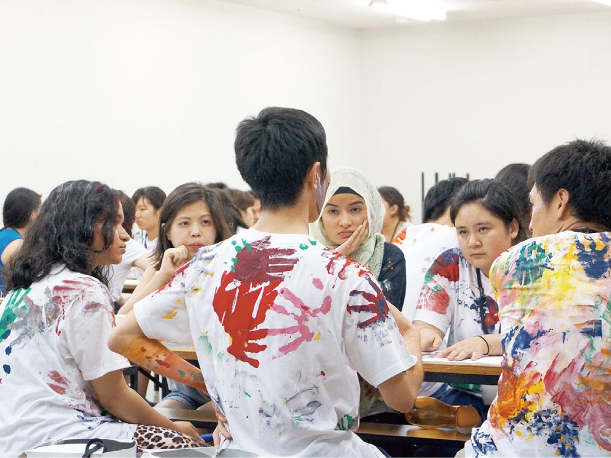 多様な背景と人生経験を持った人間が集まる国際学部。コミュニケーションの力なしには何もできません。輪になってお互いの顔をしっかり見つめ、それぞれの経験と持ち味をシェアし合います。ディスカッションの中からインスピレーションを受けとり、それを言葉にしてフィードバックするのが毎日です。