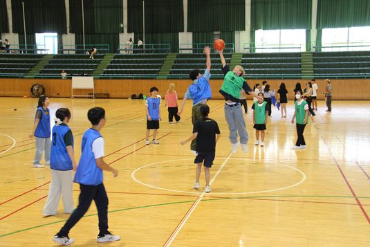 国際学部の学生が9月19日のガイダンス後に、湘南キャンパスの総合体育館で球技会を開催しました。来年度から品川キャンパスで学ぶことになる2年次生が、1年次生と親交を深めたいと企画したもの。交換留学生も参加し、1、2年次生ら約30名がバスケットボールやドッジボールで交流を深めました。