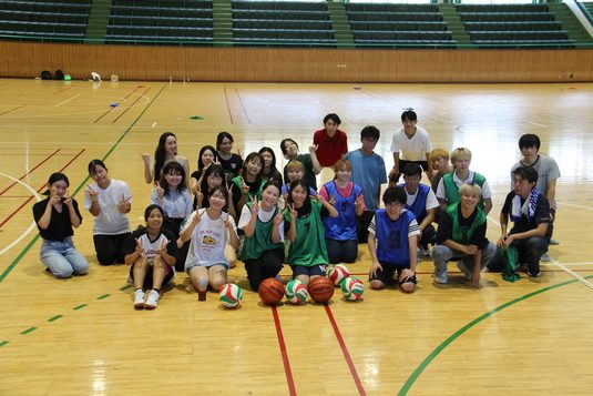 同日の夕方からは、球技会に参加した学生を中心に留学生や教員らも一緒に軽食を囲んで懇親会を実施。テーブルのあちらこちらで談笑する様子が見られました。韓国からの留学生は「日本に来たばかりで、今日は初めて多くの日本人学生と話すことができました。アイドルやアニメなど共通の話題で盛り上がり、うれしいです」とコメント。留学生らと話が弾んでいた金子朋之介さん(2年次生)は、「打ち解けた雰囲気の中で会話を楽しみ、お互いの文化を知るよいきっかけになりました」と話しました。