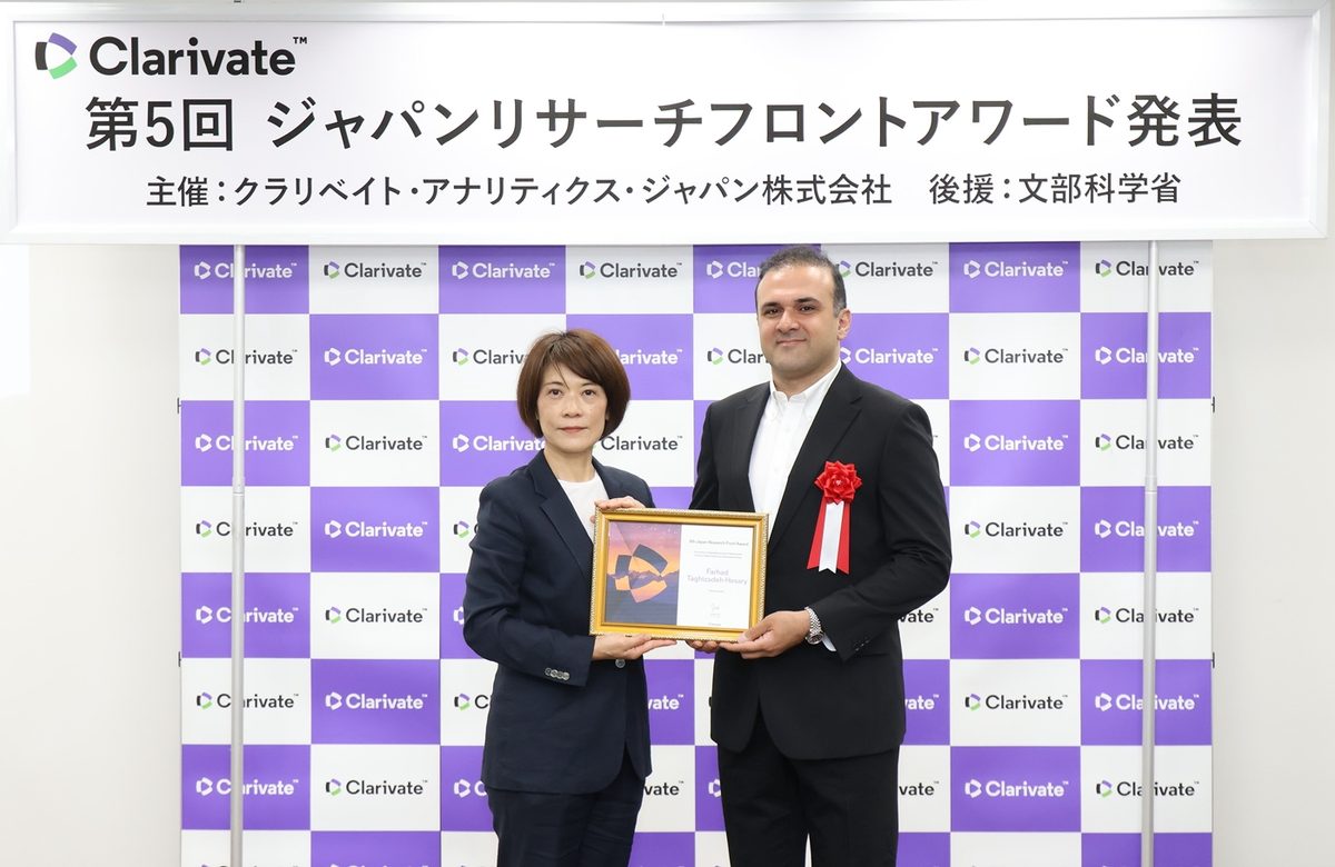 国際学部国際学科のタギザーデ・へサーリ・ファルハード准教授がこのほど、所属する東海大学環境サステナビリティ研究所の所員としてクラリベイト・アナリティクス・ジャパン株式会社が選出する「第5回ジャパンリサーチフロントアワード」(後援=文部科学省)を受賞。5月22日に東京都・赤坂TKPカンファレンスセンターで開かれた表彰式に出席しました。本賞は4年に一度、今後飛躍的な発展が期待される先端研究領域(リサーチフロント)を特定し、その分野をリードする研究者が表彰されます。学術文献引用データベース「Web ofScience」に掲載され、高い頻度で引用されている上位1%の論文(高被引用論文)のうち、後に発表された論文と一緒に引用(共引用)されている論文の分析に基づいて選出されます。今回は、全世界1万2726のリサーチフロントから、日本の研究機関の貢献が高いと認められる11のフロントと、その中で顕著な功績が認められる研究者のうち、2001年以降に学位を取得した11名が受賞しました。