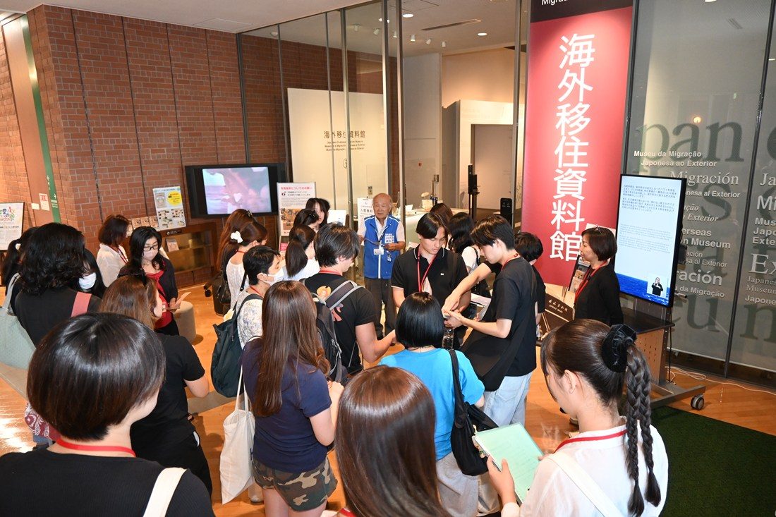 最終回の7月19日は、同館内にある海外移住資料館の見学に続いて本学部の小貫大輔教授が講師を務め、初回からの講義を振り返りメキシコ独立やキューバ危機、米ソ冷戦で翻弄されたラテンアメリカの状況、ブラジルの軍事政権の台頭といった近現代史について講義しました。また、自身がブラジル留学中にボランティアを通して体験したエイズ禍を発端とする激動の社会情勢も織り込み、「日本からラテンアメリカへ、ラテンアメリカから日本へ」「多文化共生は『多文化主義』か『間文化主義』か?」をテーマに語りました。